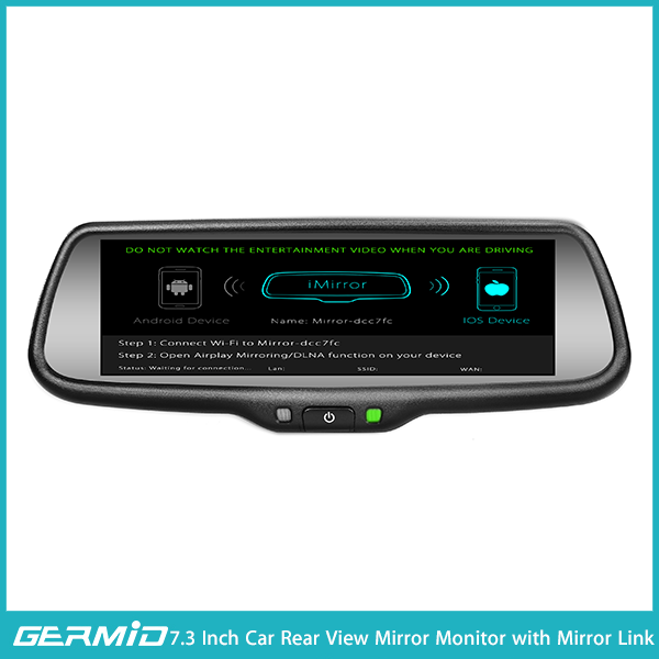 7.3 inch Mirror link full screen mirror monitor with touch screen and wireless connection with IOS/Android device