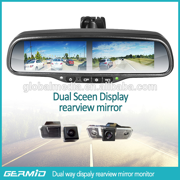 Multifunctional car rearview mirror dual 4.3 inch car monitor 4 video inputs OEM bracket