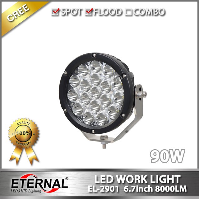 Product Description Size: | 6.7”( Φ170*80MM) | Name: | 90W high power led driving work lamp | Housing Material: | Diecast aluminum | Lens Material: | Polycarbonate | Operating Voltage: | DC 10-30V | LED source: | 5W CREE LED | LED Qtys: | 18pcs | Lumen output: | Raw 8000lm | Beam patterns: | Spot,flood | Housing color: | Black | Color temperature: | 6000K | Mounting brackets: | Stainless steel | Working temperature: | -40~+85 deg | Lifespan: | +50,000 operating hours |