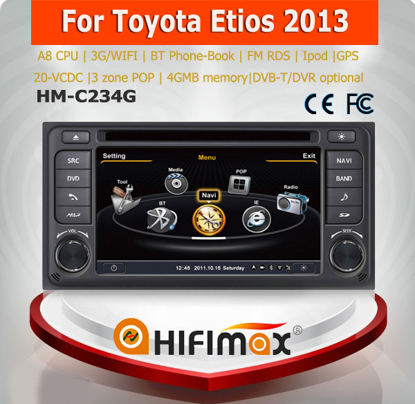 Hifimax car navigation FOR Toyota Etios 2013 WITH A8 CHIPSET DUAL CORE 1080P V-20 DISC WIFI 3G INTERNET DVR