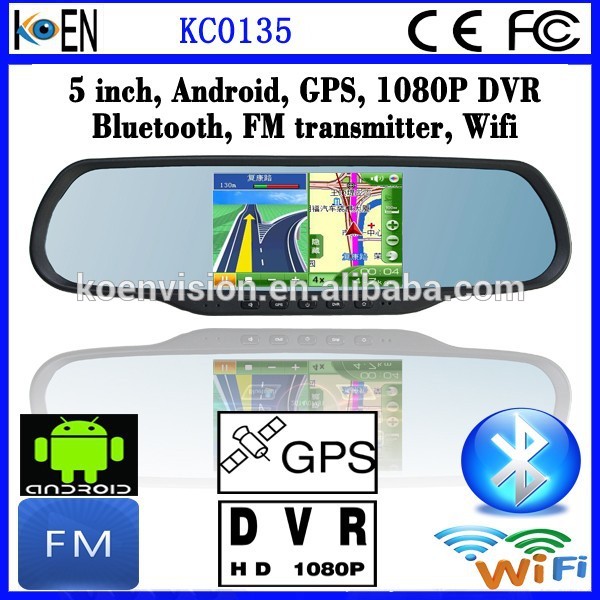 CE RoHS 5 Inch Touch Screen Android System Rearview Mirror With GPS Bluetooth 1080P DVR Camera Wifi FM Transmitter