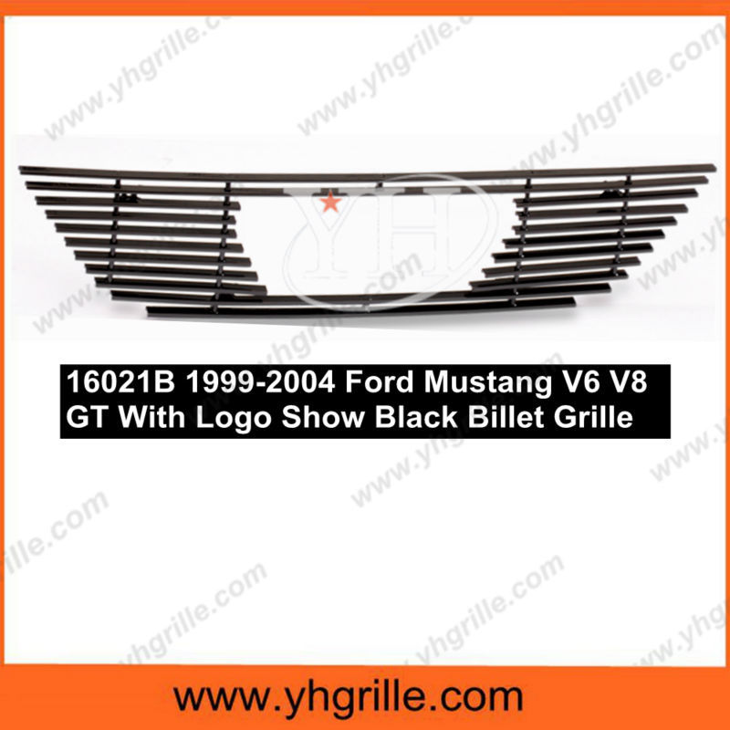 1999-2004 Ford Mustang V6 V8 GT With Logo Show Black Billet car front grills