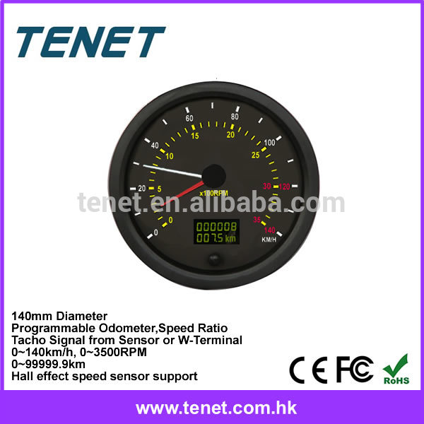 1. Digital Speedometer & Tachometer2. Total Mileage Programmable3. Sub-total Mileage can be reset to zero4. Speed Ratio(imp/km), Tacho/RPM Ratio Programmable5. Overspeed Alarm (Threshold Programmable)6. Tachometer gets signal from RPM sensor or W-terminal7. Speed Range: 0-140km/h8. Tacho Range: 0-3500RPM9. Odometer Range: 0-999999km10. Installation Diameter: 140mm