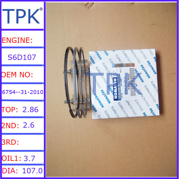 S6D107 piston ring set 6754-31-2010, SAA6D107E-1 engine piston ring, usd for komatsu excavator PC200-8 engine parts