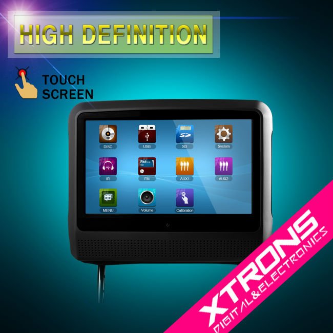 Title: HD906T: monitor 2x9" headrest monitor DVD player SD/ USB/ DVD/ IR Transmitter/ Support 32bits GAMES / Digital Touch Screen/ Detachable Screen/ Dual security/ 6 Spare Poles Kits/ 2 FREE cigarette lighter Power Lead/ Detachable Bracket( optional) Three colors available