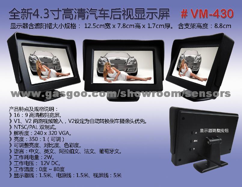 Universal TFT monitor V1 V2 dual video inputs. V2 is priority for reverse camera Hi resolution 240 x 320 RGB