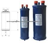 SPLY Oil separators: The oil separator is capable of separating oil from refrigerating gas mixture so as to improve the performance of refrigerating air conditioning system and save energy. The mixture of the refrigerant and oil of the compressor enter the inlet of the oil separator, and flow through a filter and a baffle unit to make oil particles aggregate and drop to the bottom of the oil separator. The refrigerant gas goes through the outlet, and after the filter separates the remaining oil particles, the gas enters the condenser under oil-less state. The oil of the pressure of the oil separator is higher than the pressure of the oil separator, and a needle valve operated by a floating ball is opened to let the oil return to the compressor. Since the pressure of the oil separator is higher than the pressure of the crankcase, the oil can quickly return to the compressor. When the oil level drops, the needle valve is closed to prevent the refrigerant gas from returning to the compressor. The oil separator system is mostly installed in the multiple compressor racks for supermarkets and air conditioning, system with long refrigerant lines, system with problems of internal oil drive back, ultra-temperature system and system using HCFC, HFC and their lubricants. Features: 1. Hermetically-sealed construction with steel air-return system (1/4 or 3/8"SAE connection) 2. Dependable shut-off system of floating valve 3. Solid copper connection 4. Corrosion resistant painting 5. Maximum operating pressure: 3.1Mpa TYPE SPLY-55824 SPLY-55855 SPLY-55877 SPLY-55889 SPLY-559011 SPLY-559213 SPLY-569011 SPLY-569213 SPLY-569417