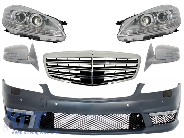 Headlights LED Mercedes W221 S-Class (2005-2009) Facelift Look Facelift look headlights equipped with LED DRL function, The headlights have built in controllers for Daytime Running Lights and LED Signalling. Headlights are working with D1S Xenon (HID) bulb for low beam and H8 Halogen bulb for high beam. Old xenon control unit can be installed No additional facelift control unit required Installation instructions not provided Require to change the old socket with facelift socket Do not require reprogramming or any modification on the CAN system We recommend professional fitting in an authorized service Mirror Covers Assembly -Folding Mirror Function -Memory Function -Heating Function -Auto Adjust in Reverse Mode This mirrors system is not compatible with Auto Dimming and Side Assist function. Mirror covers are unpainted.