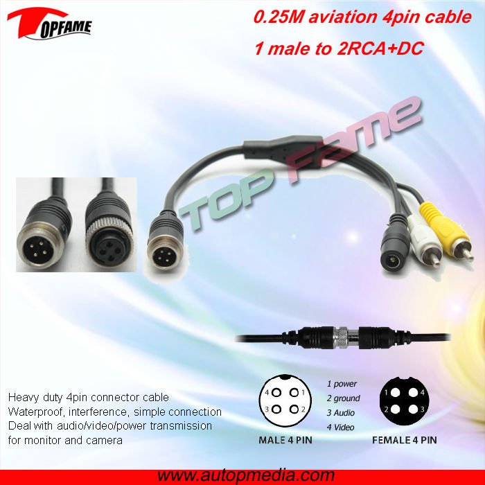 Model Number:Aviation to RCA+DC cable