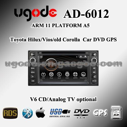 6.2" Toyota new hilux old corolla/Camry/RAV4 /Land Cruiser in dash car DVD GPS player AD-6012 Main features: 1. Sliding iPhone style GUI menu 2. Open logo and wallpaper option 3. 16:9 HD Digital TFT LCD with magic touch-screen 4. Resolution: RGB output 800*480 pixels 5. High sensitive AM/FM radio receiver and 4*45 watts amplifier 6. Built-in GPS navigation system ,Dual-zone (front and rear) independent playing 7. Compatible:DVD/VCD/CD/MP3/MP4/DIVX/USB/SD/MP3/MP4/DIVX/RMVB 720P 8. Hand free bluetooth and A2DP music,Phone book,call record and name search 9. Four ways audio output and subwoofer,two way AV input 10. Support reverse camera input with automatic screen switching 11. ESP and Anti-shock Protection 12. iPod iPhone music (can charge iPhone) 13. SD/MMC slot, USB port 14. Real time display, Games 15. Steering wheel control 16. Multi-languages menu 17. V6 Disc optional 18. Analogue TV & DVB-T ISDBT optional Specification *Processor: Advance Sirf Atlas V ARM11 *Max.main frequency : 500Mhz+250Mhz DSP *EMS Memory : 128MB SDRAM *Storage device : 128MB DDR333,Support SD/MMC Card. *Operation system : Wince 6.0 *SD Card/USB support menory : 32GB *Resume play support UGO Digital Electronics Co.,Ltd UGO is specialized in R&D, manufacture and distribution of Car DVD products, especially on Car DVD player, GPS navigation and Car TFT monitor etc. since 2006. We have professional product base and a research center, including mould center, SMT process center, assemble factory, sales office. With more than 5 years' experiences in the CAR AV Electronics technology, UGO owns many advanced R&D experiences, whose audio processing and control technology is always in international advanced level, which has extreme reputation in AV industry around the world. OEM or ODM is welcome and we have wide experiences for OEM or ODM and will try our best to satisfy our customer's specific requirements. The Quality Control is under strict ISO 9001:2000, TS16949:2009 management system and ISO 14001 environment management system to ensure our products meet international quality standards.