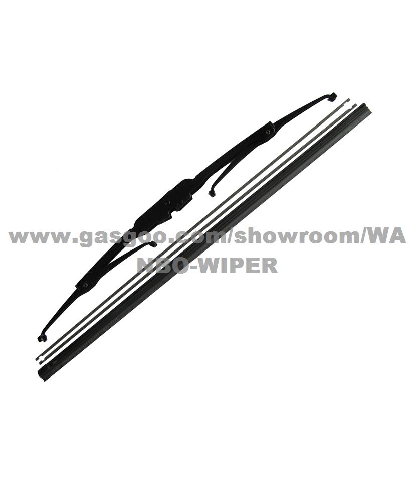 Product Name: conventional metal wiper blade-T50 T50-26 OEM No/Model: T50-26 Frame Wiper Blade Universal Type Model NO.: T50 Size Available: 12"-28" Wiper Arm: 1) for U-hook type: 8.7X7mm and 9X11mm, 2) for Pin type: 4.8mm and 6.3mm --Aerodynamic ,Low profile,Low lift design for full steel frame --full steel frame and moly-graphite coated for extended life. --Premium natural rubber with BN coating to insure long lasting superior wiper --Pre-installed arm adapter connector on every blade.Installed in seconds. --Offer 98% application coverage (10"-28"). --Quality on par with leading national brand --Packaging :Advanced packaging for beam & conventional blades, made with PVC