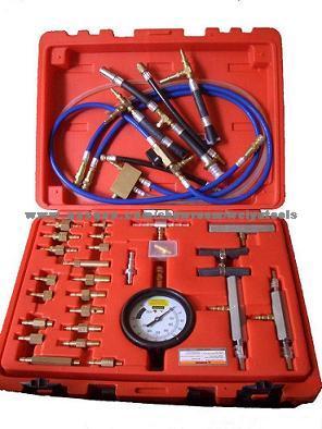 Diagnose fuel intake issues on most domestic and imported cars, such as detecting leaking injectors, fuel rail deterioration, malfunctioning fuel pump check valves and more. Material: brass/ steel/ aluminum/ polyurethane/ rubber/ vinyl/ thermoplastic Contents: .0-100psi fuel gauge with quick release valve .Seven various hose assemblies .Four metric paired hose adapters .Two steel hose clamps .Four copper washers .Fifteen metric sized fittings .8 SAE sized fittings Applicable Injection System: GM throttle, Multi-Port, CIS(Continuous Injection System), Ford CFI/EFI, Bosch AFC