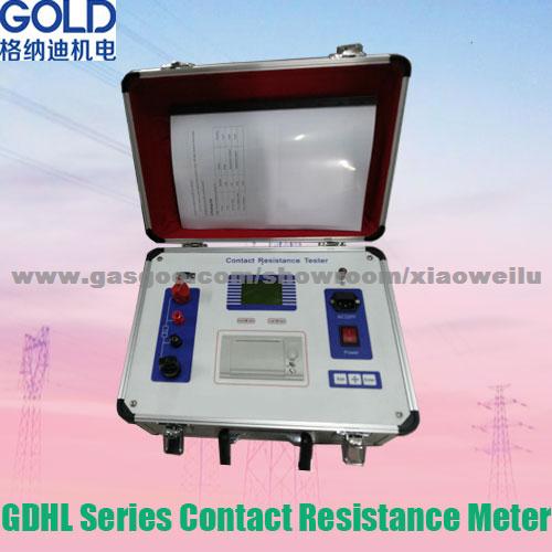 Contact Resistance testing equipment 1 General introduction Contact resistance tester output DC 200A/100A current to test the contact resistance of circuit breaker or high current cable contacts. It is designed according to IEC62271. The main application of the tester is measurement of circuit breaker contact resistance. All the test results of the tester could be print by the micro-printer which is integrated in the tester. Also all the test results saved in the tester could be upload to PC computer and then convert to MS WORD document. 2 Functions and technique index 1 Contact resistance measurement 3 Result print 4 Unload data to PC 3 Technique index 1. Measurement range: 0-1999.9 μ Resolution: 0.1 μ 2. Test current: DC 200A/100A for different selection 4. Maximum error< 0.5 %RDG+0.05%FS 5. Display mode: LCD 6. Save no more than 100 groups of data 7. RS232 computer interface 8. Rated power supply: AC220V 9. Size: 340 × 280 × 210mm3 10. Environment temperature: -10 º C~+40º C Relative humidity<80% 11. Weight: <17kg